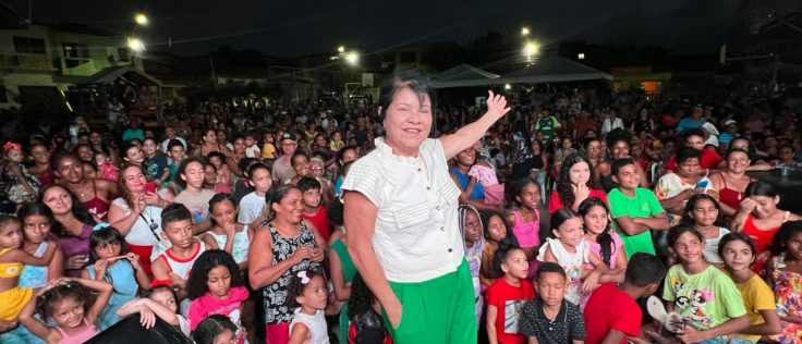 O brilho no olhar das crianças refletia a felicidade de quem vive em uma comunidade que se sente acolhida e cuidada com carinho pela “Pequena Guerreira”. Assim foi o clima do Natal Solidário promovido pelo Governo do Estado, neste domingo (28), no bairro Vila Conceição, região do João de Deus, com o apoio da secretária adjunta da Secretaria de Estado da Articulação Política (SECAP), Fátima Araújo.
